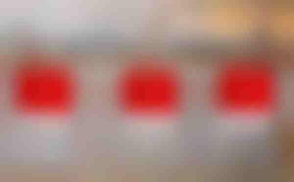 Vánoční potahy na židle SANTASEAT jsou navrženy jako potahy připomínající čepice Santa Clause,