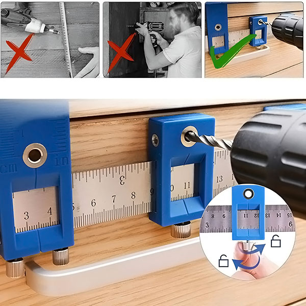 🛠️ Vždy perfektní vrtání! Usnadněte si kutilství s naší nastavitelnou středicí šablonou. Přesně vyvrtejte otvory do dřevěného nábytku a dalších prvků díky rychlému a přesnému zarovnání pro jakýkoli projekt.
