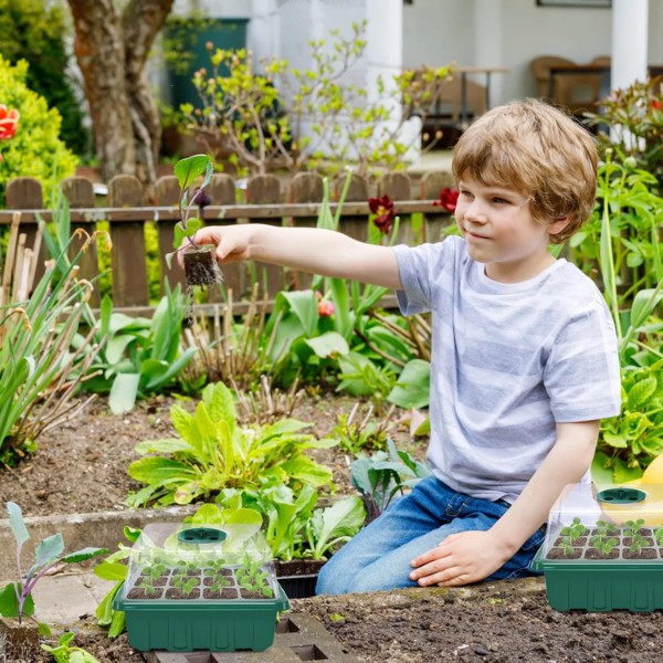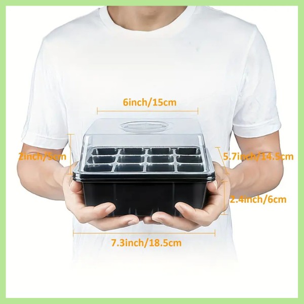 Každá miska má 12 otvorů a víko s ventilačním otvorem. Nyní můžete kontrolovat úroveň vlhkosti a zajistit nejlepší prostředí pro vaše sazenice. Pěstujte zdravé, dobře provzdušněné kořeny pro silnější rostliny.